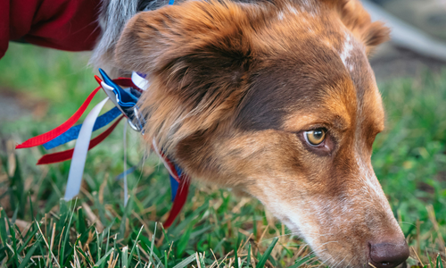 地面近くの落ち葉や草の陰におやつを隠すと、鼻を下げた姿勢でリラックスホルモンが増えます。